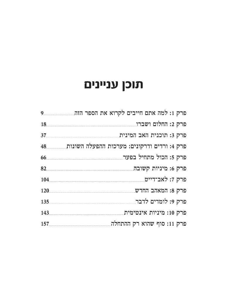 גן עדן במיטה הוא ספר מהפכני. תשכחו מספרי הדרכה עם טכניקות ותנוחות, אתם הולכים לגעת בשורש העניין — מה הסיבה שהמיניות הולכת ונשחקת אצל מרבית הזוגות, ויותר חשוב — מה אתם יכולים להתחיל לעשות עוד היום כדי לנצח את הסטטיסטיקה ולהיות זוג לוהט לתמיד.